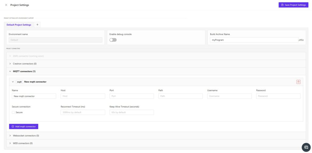 Built-in MQTT support enables real-time communication with IoT devices and AV systems. This allows for interfaces to receive live status updates and send control commands instantly. MQTT integration allows for AVstudio projects to be more scalable and responsive across a multitude of environments.