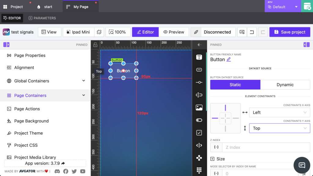 You can build beautiful, responsive HTML5 interfaces with ease: add elements, rearrange layouts, apply styles, and define actions visually. AVstudio takes care of the code behind the scenes so you can focus on design and user experience.
